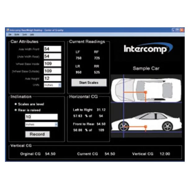 Logiciel «RaceWeight» développé par INTERCOMP pour faciliter les réglages châssis grâce à une interface intuitive.