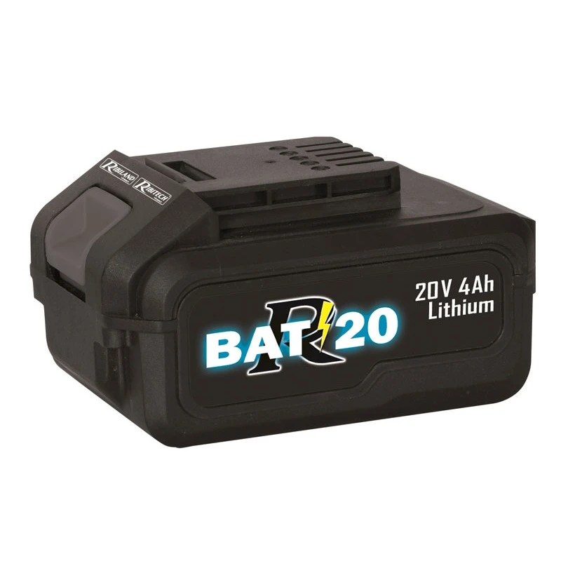 Batterie Li-Ion 20 V – 4 Ah avec témoin de charge.