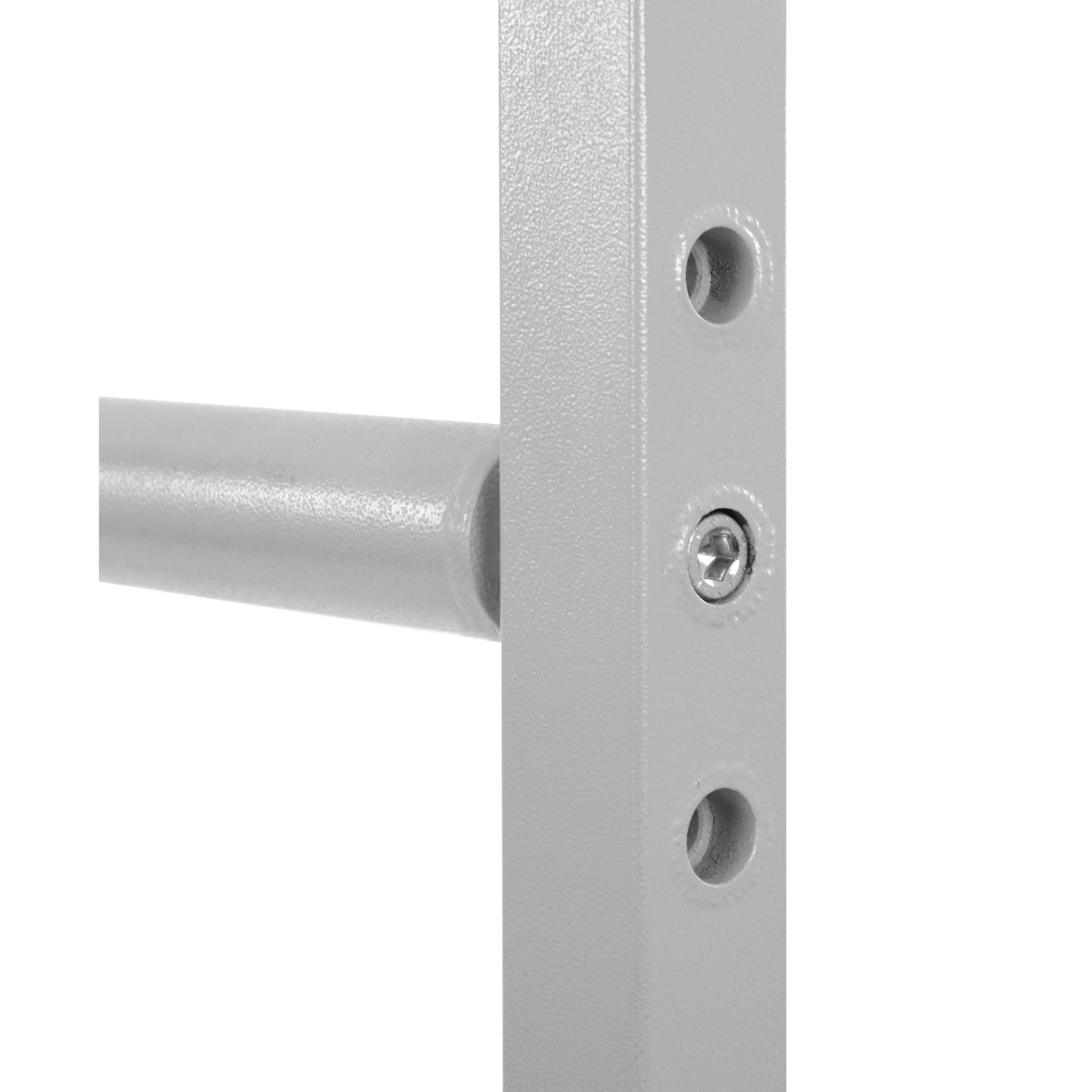 Les traverses rondes démontables réduisent le marquage des pneus et sont disponibles en longueurs intérieures de 1300 mm, 1500 mm ou 1600 mm. La hauteur des poutres supérieures peut également être réglée sur 3 positions en fonction du diamètre de vos pneus et pour réduire la hauteur totale du chariot.