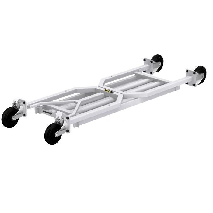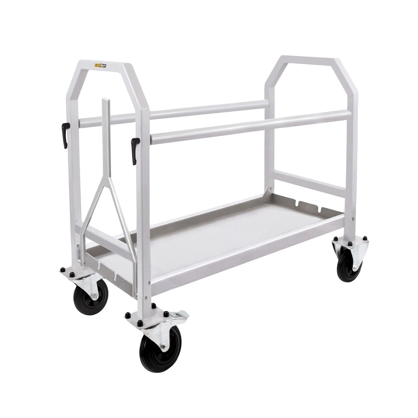 Chariot pour transporter les pneus ainsi que les outils grâce à son bac inférieur.