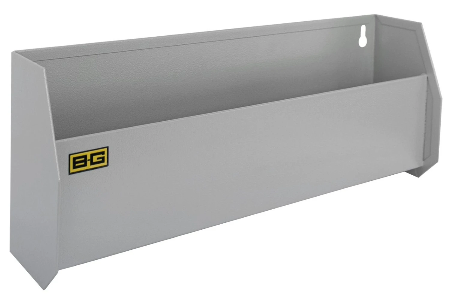 L’étagère pour boîtes d’aérosol BG peut être fixée au mur d’un atelier, d’un camion ou d’une remorque grâce à ses points de fixation en trou de serrure.