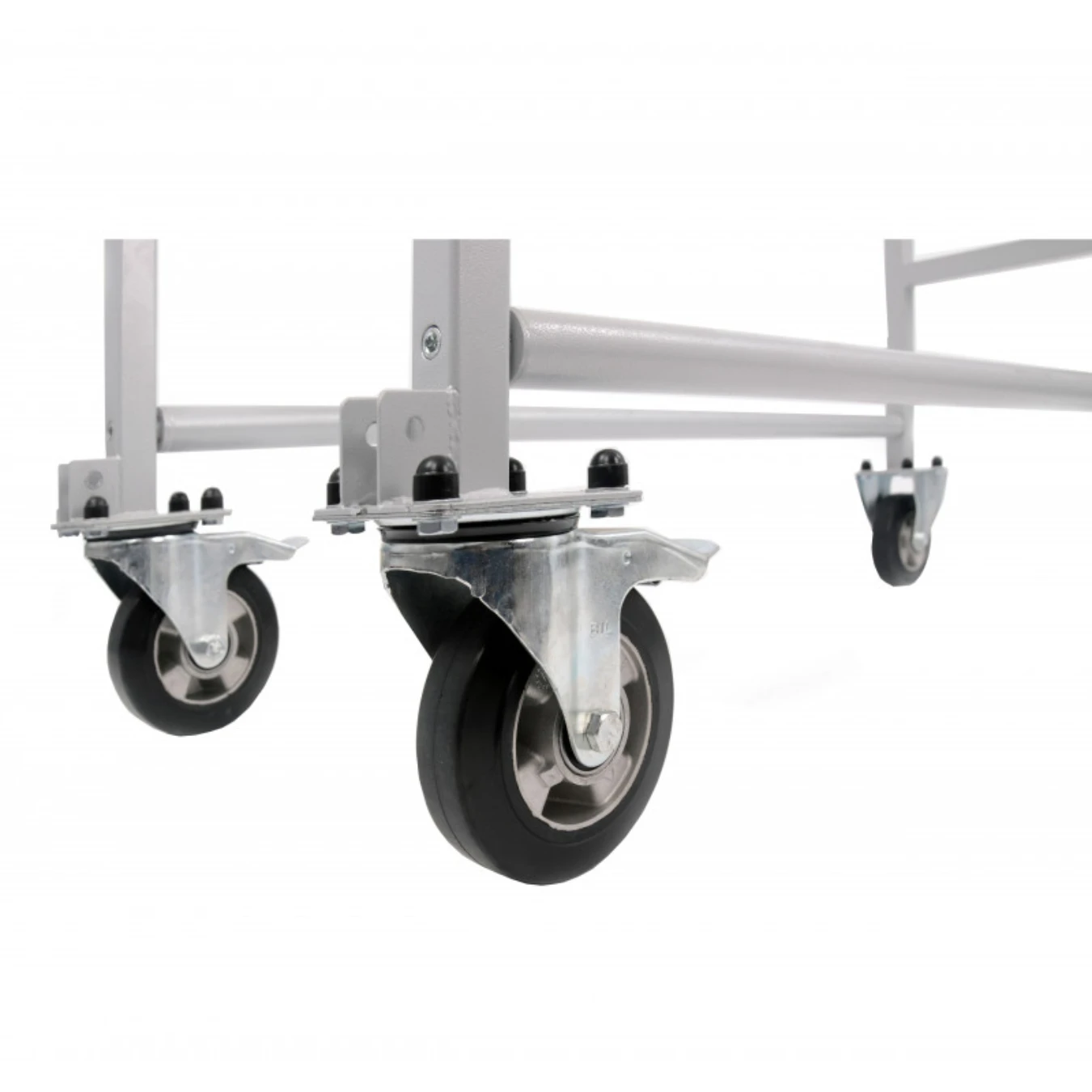 Vendues par lot de 4, elles comprennent 2 supports fixes et 2 supports rotatifs de blocage et de freinage, ainsi que toutes les fixations nécessaires.