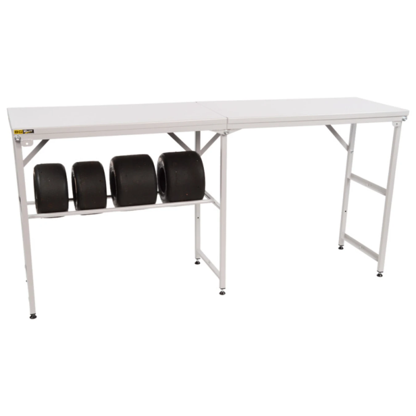 Conçus pour ĂŞtre utilisĂ©s avec la grande table pliante BG Racing, ces rails pour pneus de karting revĂŞtus de poudre se mettent simplement en place et peuvent ĂŞtre disposĂ©s dans un certain nombre de configurations diffĂ©rentes pour rĂ©pondre aux besoins de l’utilisateur, augmentant ainsi l’espace de stockage disponible.