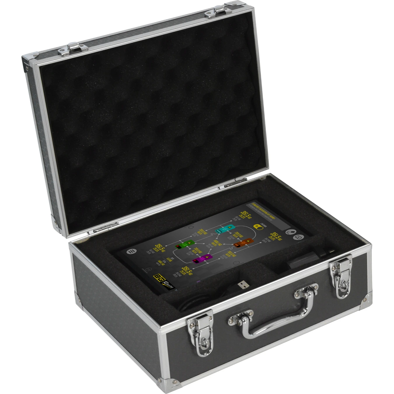 Les balances utilisent la technologie sans fil Bluetooth 5.0 pour se connecter directement à une tablette Android de 10 pouces livrée avec le set de 4 balances.
