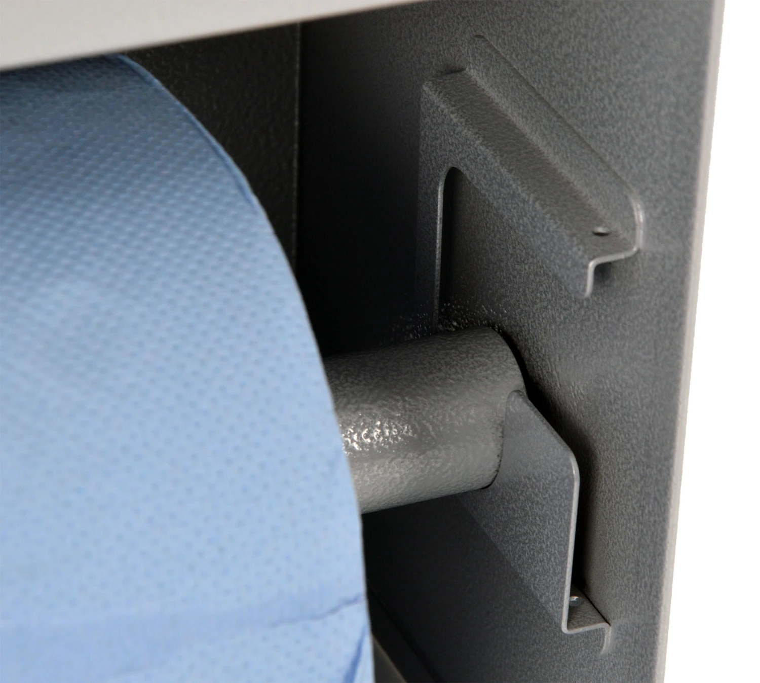 FabriquĂ©e en acier doux avec une finition Ă©poxy durable, la station de lavage comprend un porte-rouleau de serviettes en papier, une Ă©tagère de stockage pour les produits de nettoyage et d’entretien, un distributeur de gants en caoutchouc, et peut ĂŞtre suspendue dans un atelier, un camion ou une remorque grâce Ă ses points de fixation en trou de serrure.