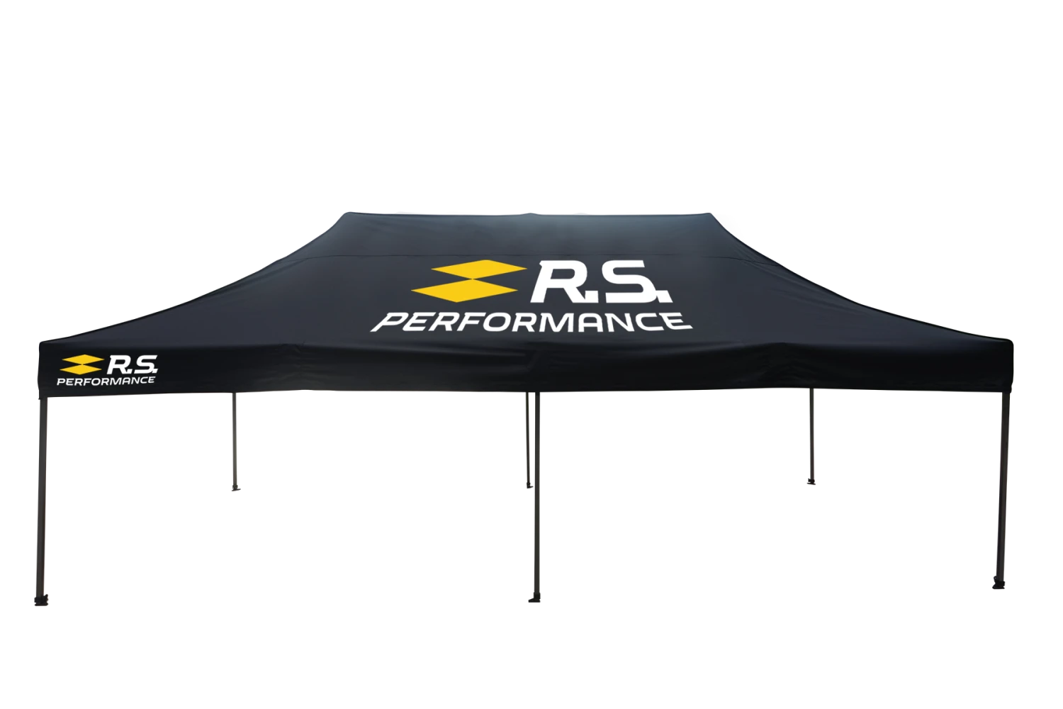 Toit 100% étanche en nylon polyester 300D (extrêmement solide et léger), traité au retardant anti-feu, sérigraphié R.S. PERFORMANCE.