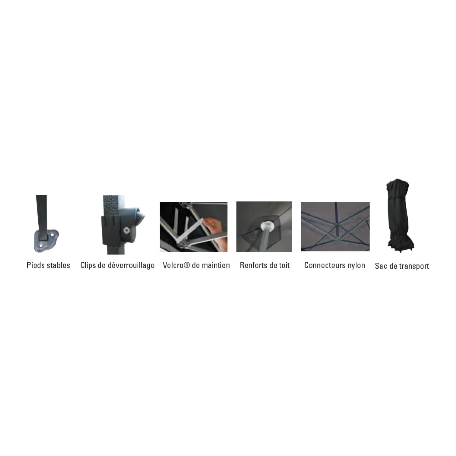 Tente en acier recouverte de peinture époxy anti-rouille, pour un usage occasionnel.